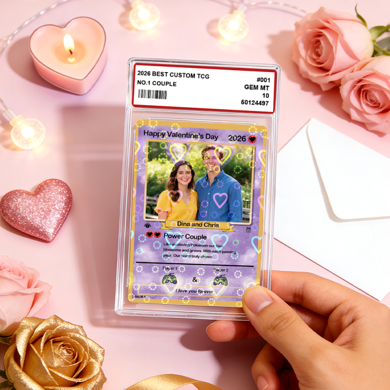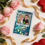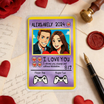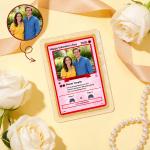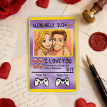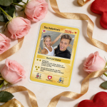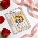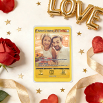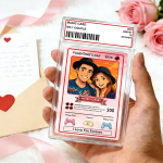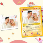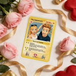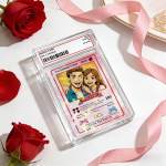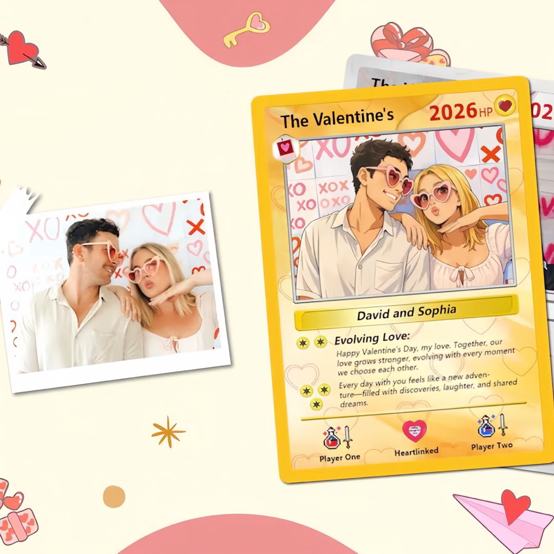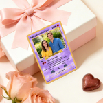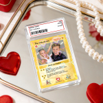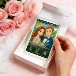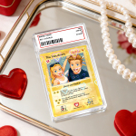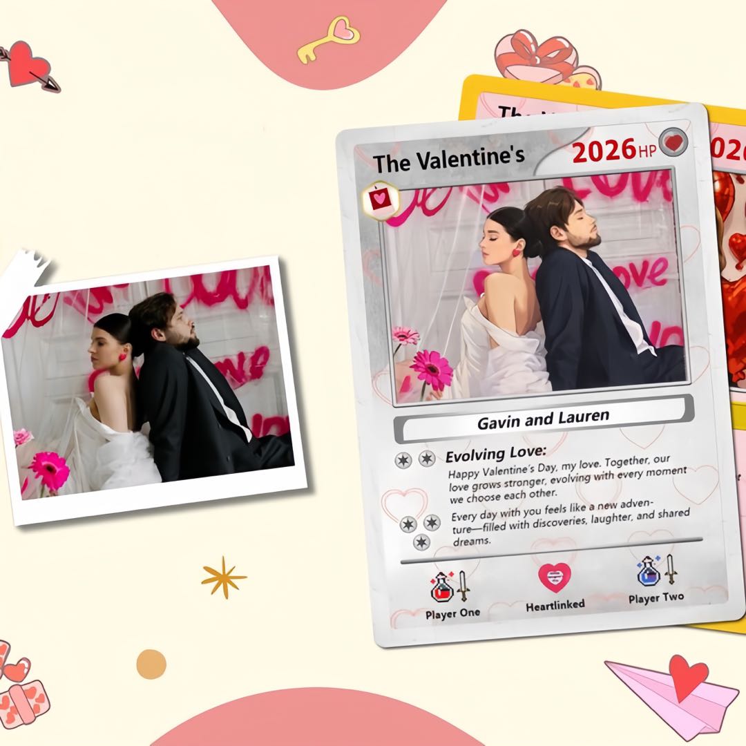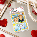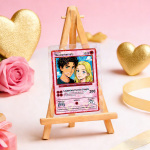 Completa di HP personalizzati, titolo del messaggio e testo descrittivo, questa carta racconta la tua storia d'amore in modo divertente e creativo.