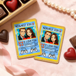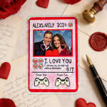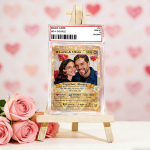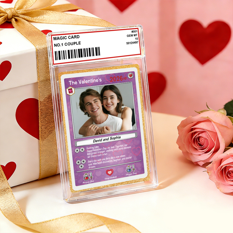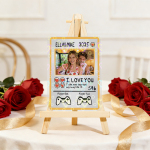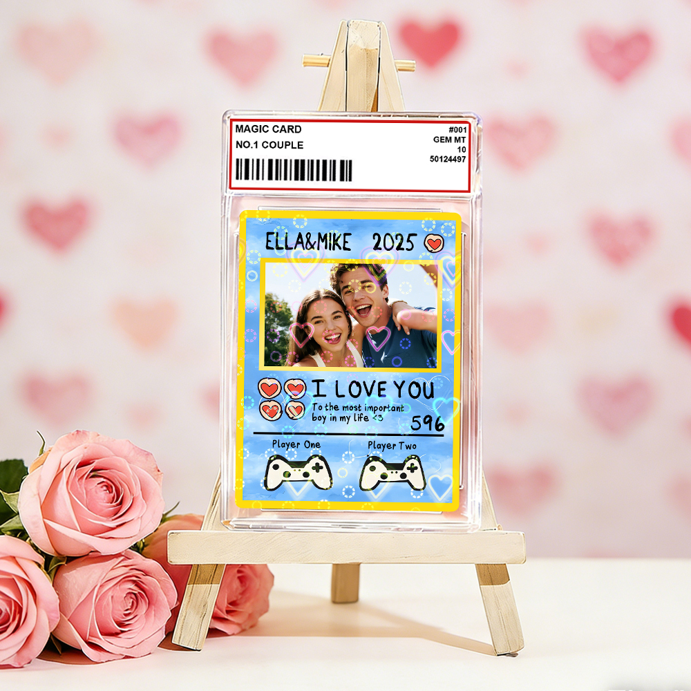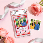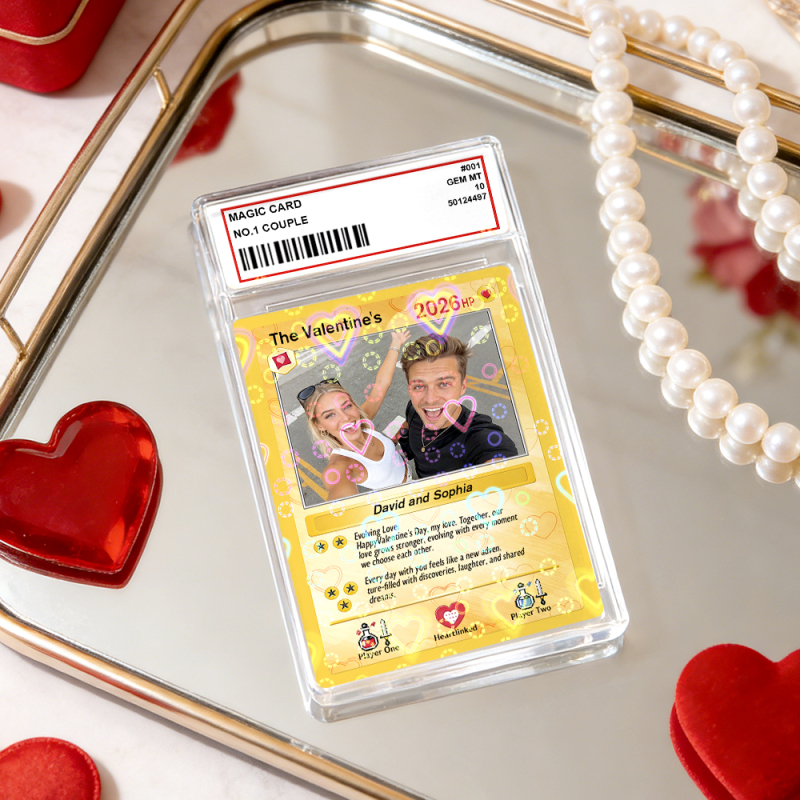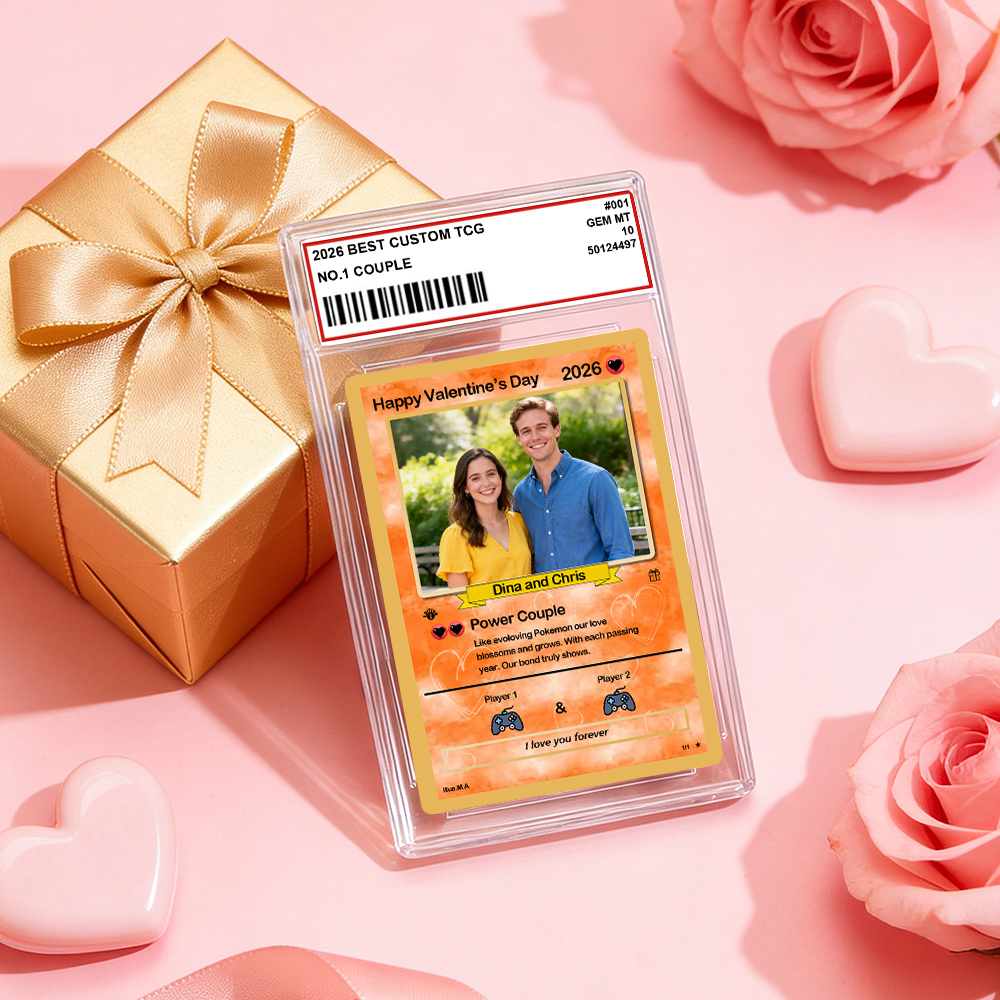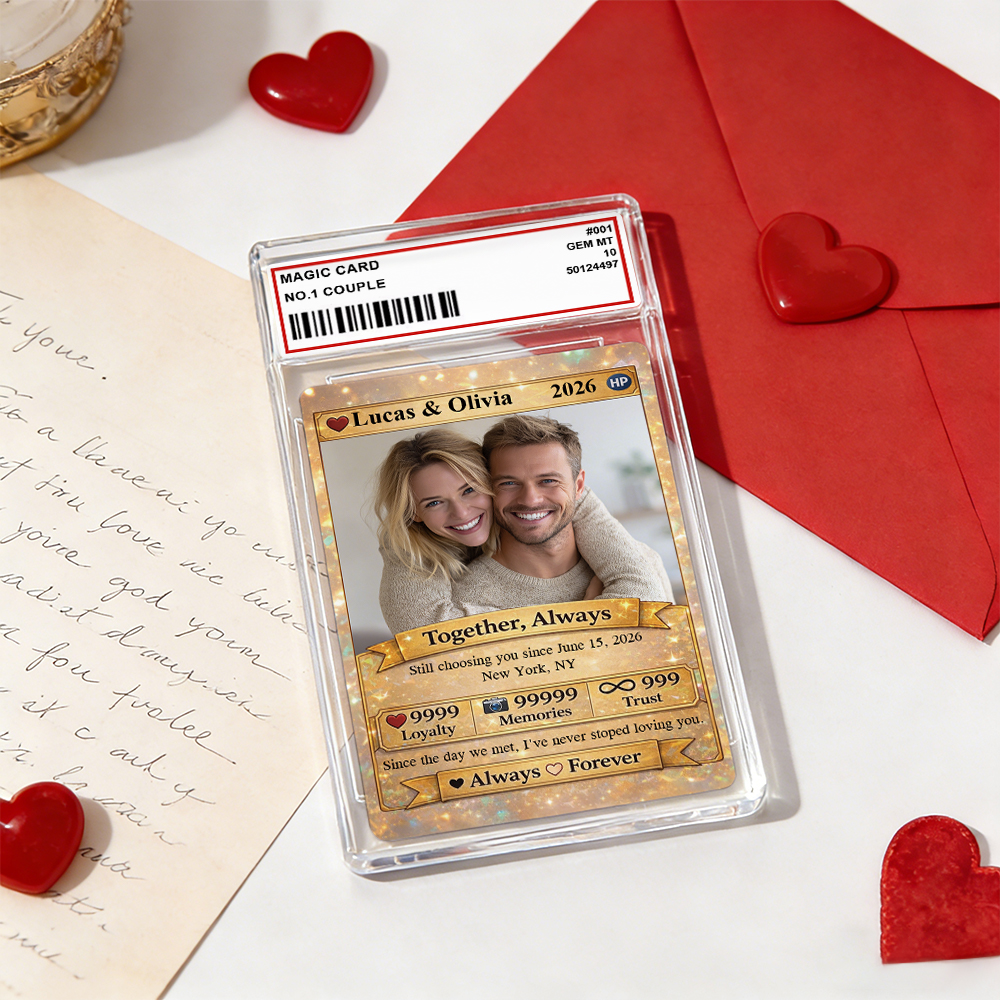 Completa di HP personalizzati, titolo del messaggio e testo descrittivo, questa carta racconta la tua storia d'amore in modo divertente e creativo.