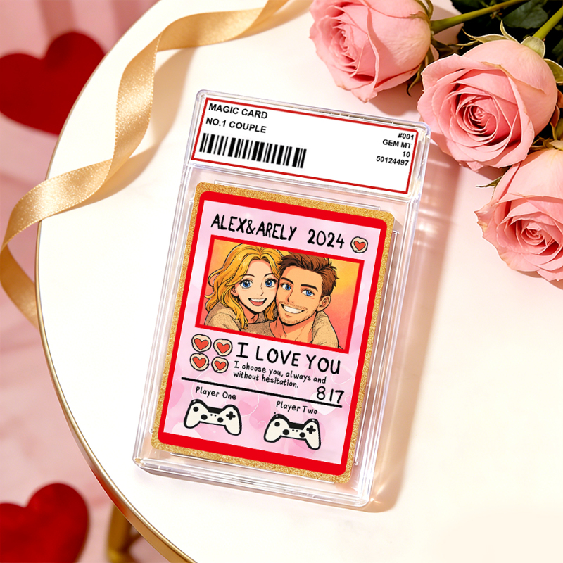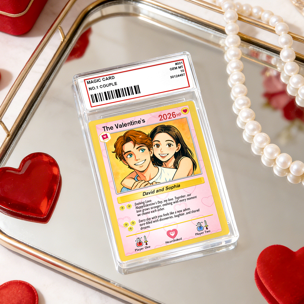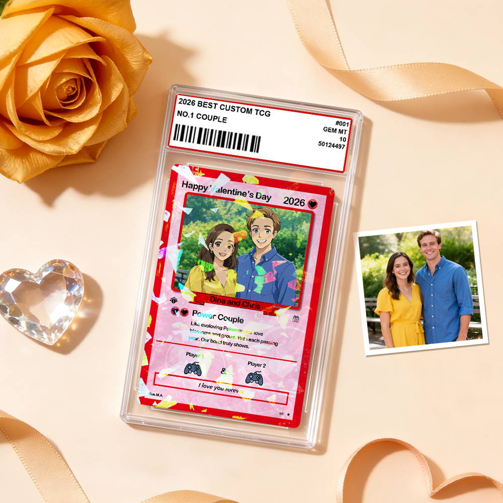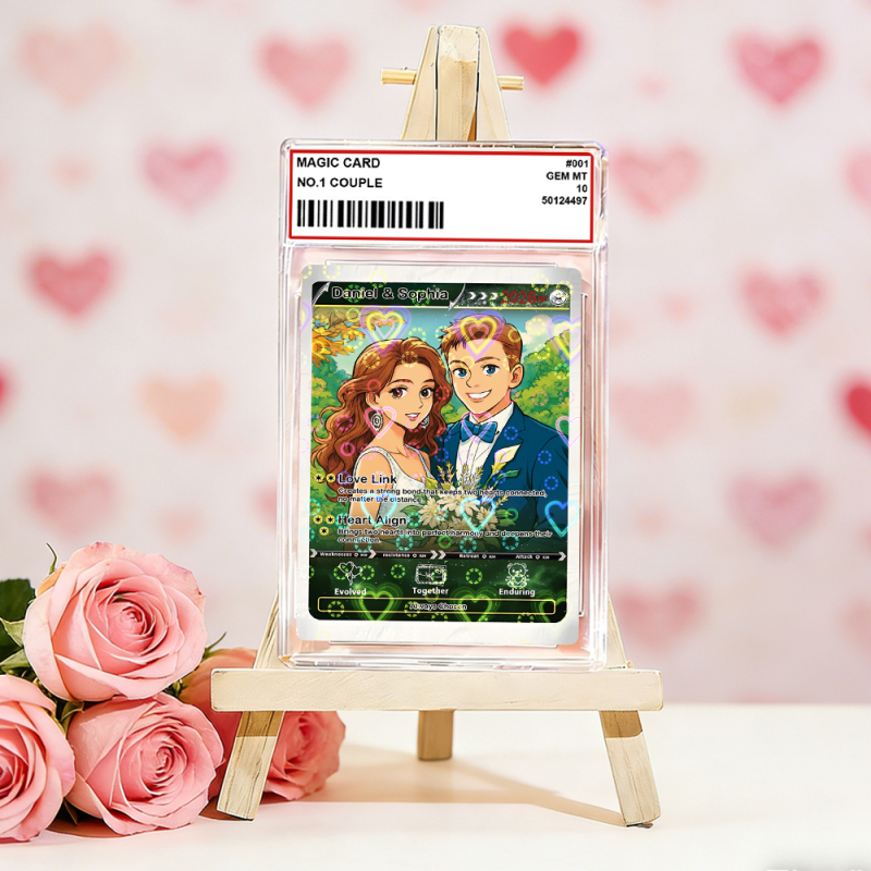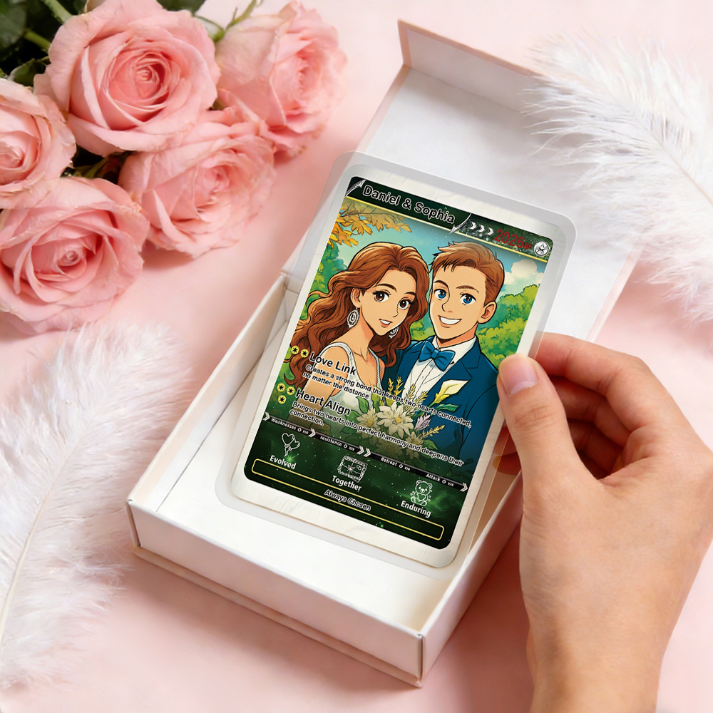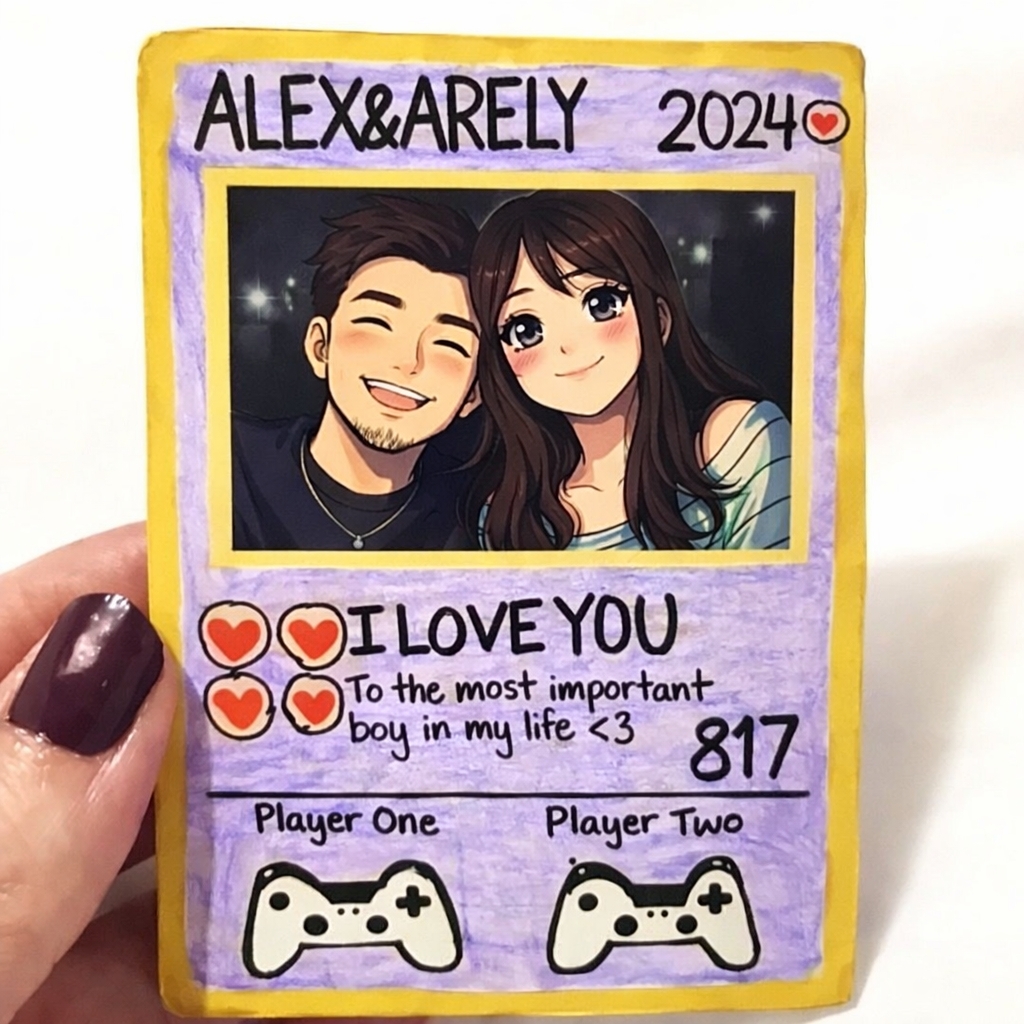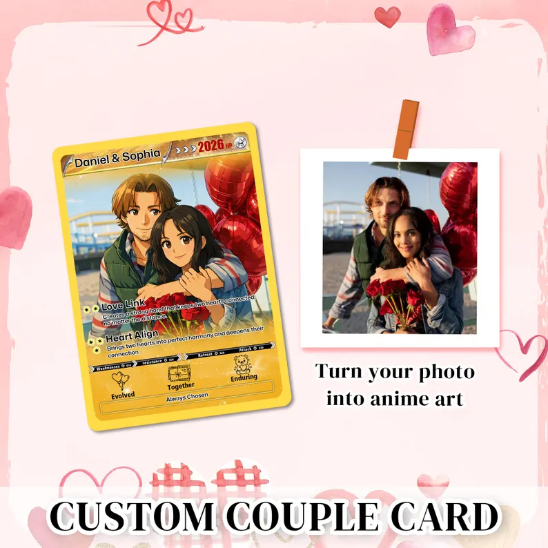 Carica la tua foto di coppia preferita e guardala trasformarsi in uno splendido capolavoro in stile anime! Aggiungi i vostri nomi, un titolo personalizzato e persino un messaggio sincero per renderlo davvero unico.