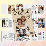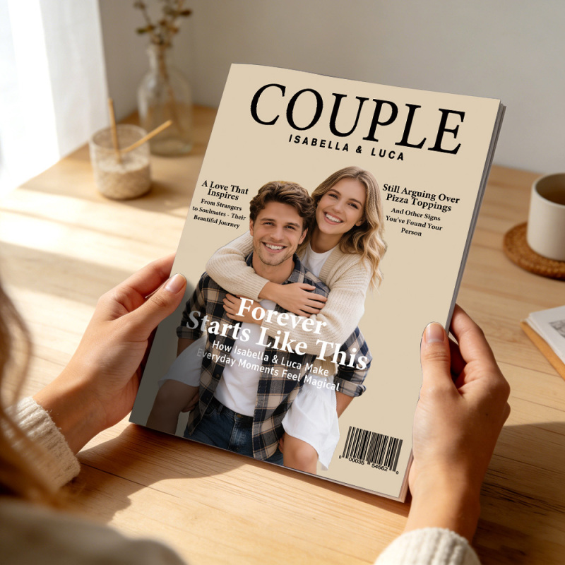 Versa il tuo amore in Rivista per coppie personalizzata: un ricordo unico progettato per celebrare la tua storia d'amore nel modo più creativo. Ogni pagina è realizzata con le tue foto, nomi, date significative e momenti dolci, trasformandoli in un elegante layout in stile rivista che è allo stesso tempo divertente e commovente.