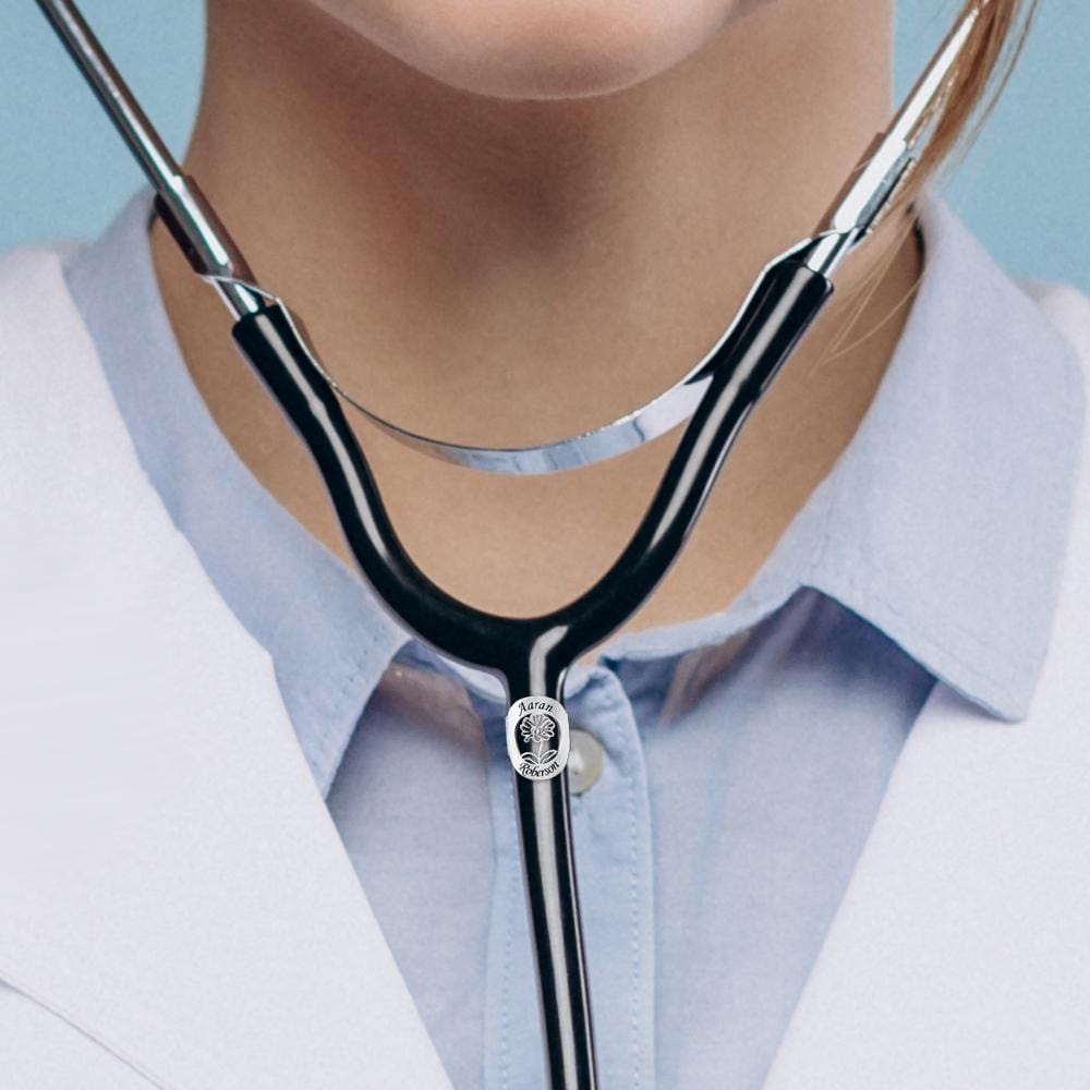 Questa targhetta identificativa personalizzata per stetoscopio è un regalo perfetto per qualsiasi infermiere o medico, inclusi studenti di infermieristica o neolaureati. La targhetta è piegata a forma di anello, con il retro aperto per consentire di infilarla e regolarla delicatamente.