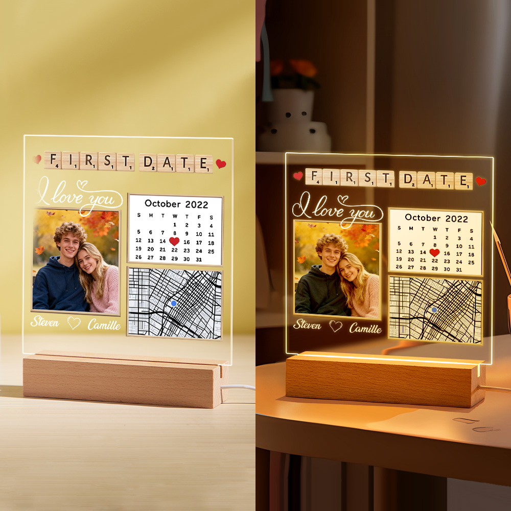 Celebra i momenti speciali dell'amore con questa squisita luce notturna personalizzabile per il primo appuntamento: il ricordo romantico per eccellenza per le coppie. Realizzata in acrilico di alta qualità, questa elegante lampada trasforma i ricordi più cari in un caldo e luminoso omaggio alla vostra storia d'amore unica.