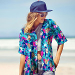 Questa camicia hawaiana presenta una stampa, una chiusura con bottoni e maniche corte.