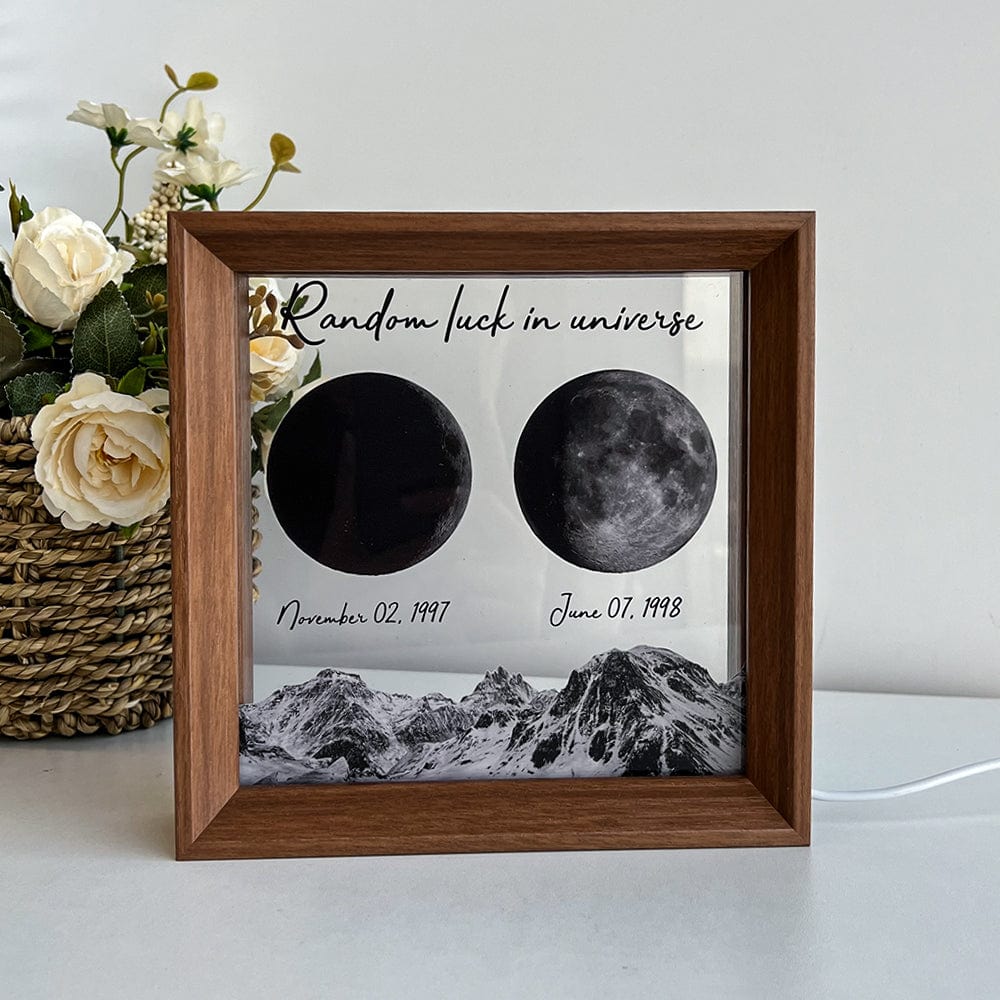 In ogni momento straordinario, usiamo le eterne fasi lunari per commemorare quegli istanti emozionanti. Celebra il tuo amore con un regalo premuroso e personalizzato, creando ricordi unici e preziosi per quella notte speciale. La nostra cornice in legno con stampa della luna mostra la fase lunare precisa della notte in cui vi siete incontrati per la prima volta o del giorno della tua nascita, rendendola un regalo davvero eccezionale e ricco di emozioni.