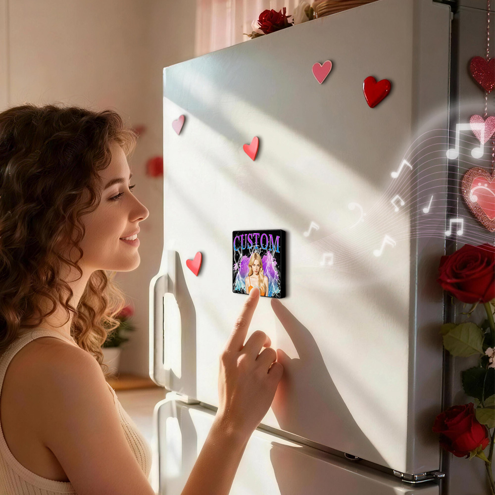 : Scegli canzoni d'amore romantiche o le tue melodie preferite per creare un magnete da frigo personalizzato. Ogni volta che il magnete si attiva, sarà accompagnato dalla musica del tuo amore. Se lo desideri, puoi anche cambiare la musica del magnete con qualsiasi canzone a tua scelta o con una registrazione vocale personale. Per istruzioni dettagliate, contatta il nostro servizio clienti. Abbiamo un tutorial dedicato pronto per te.