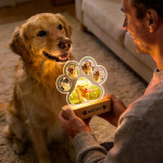 2️⃣ Foto personalizzata all'interno: quando è accesa, il suo adorabile musetto appare in una calda luce ambrata, come se si stessero di nuovo abbracciando.