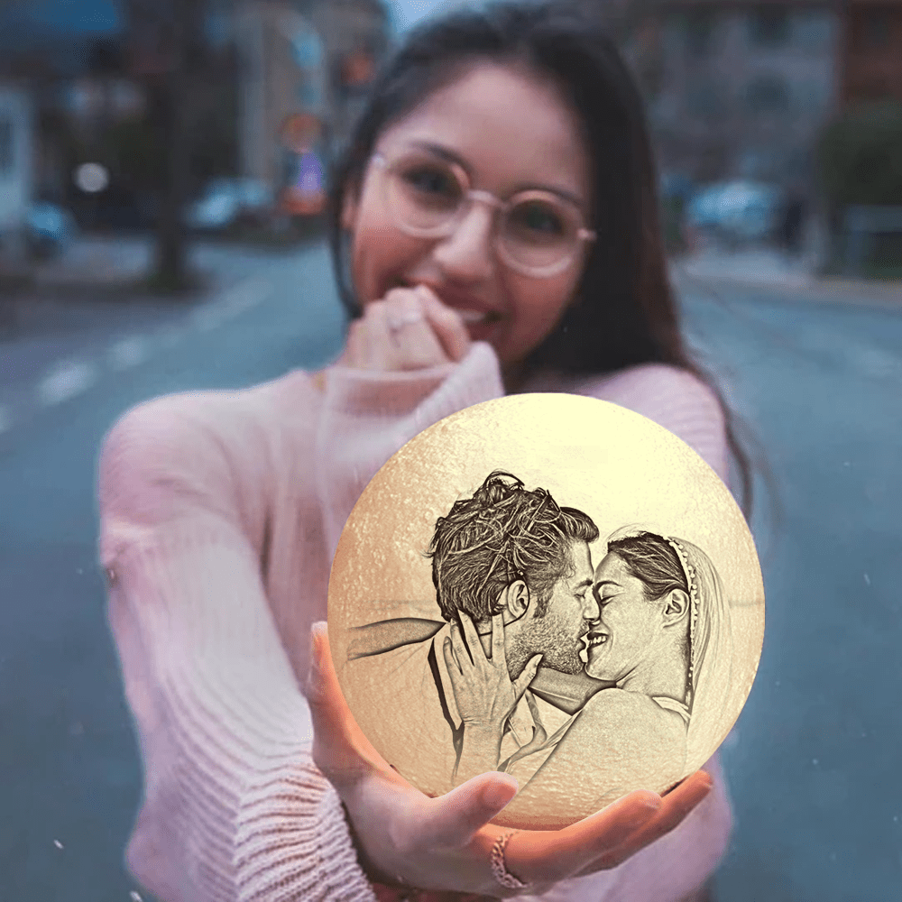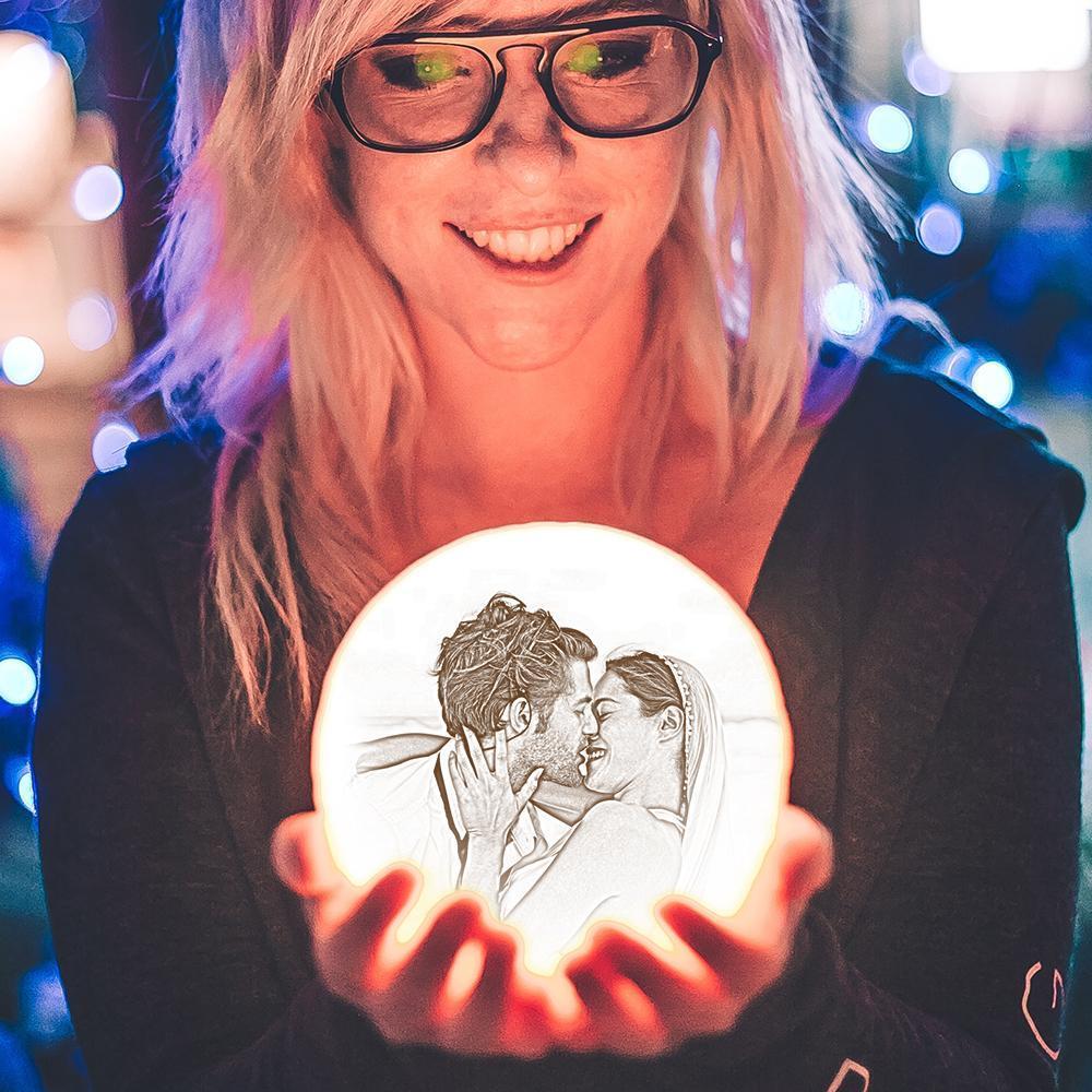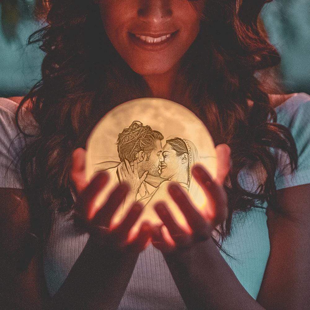 Lampada A Forma Di Luna, Regalo Per Anniversario Di Matrimonio, Con Telecomando E 16 Colori.