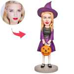 Regalo Di Halloween: Statuetta Personalizzata Con Testa Oscillante E Testo Inciso - Piccola Strega Con Zucca Intagliata
