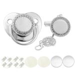 Cerchi un regalo unico e lussuoso per il tuo bambino? Questo set di ciucci personalizzato è un ricordo speciale che i genitori custodiranno per sempre. Perfetto per festeggiare la nascita di un bambino, il suo primo compleanno o un battesimo, questo elegante set è un regalo ideale!