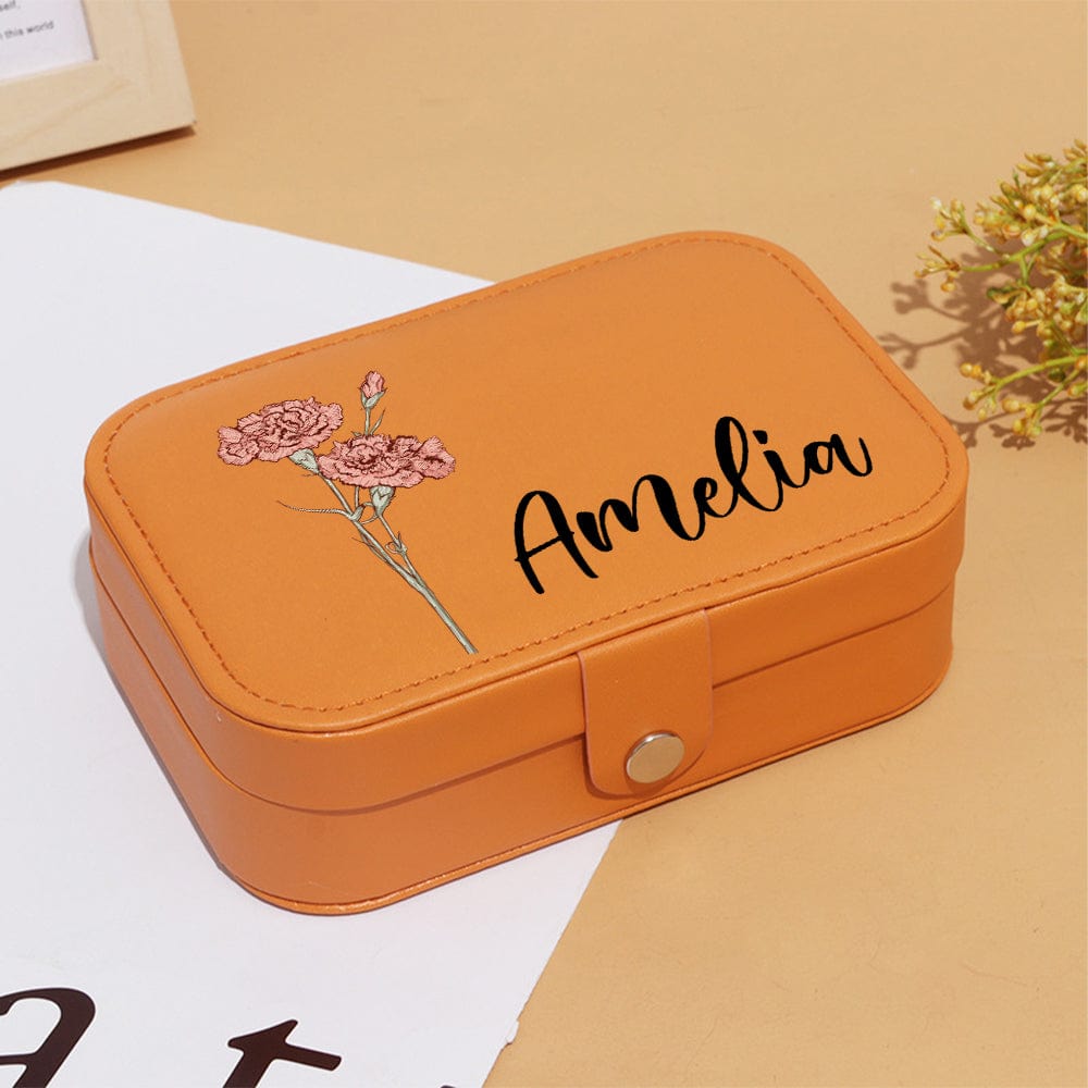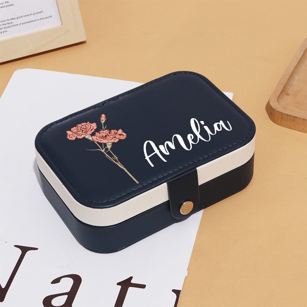 Portagioie Da Viaggio In Pelle Personalizzato Con Fiore Di Nascita, Nome, Impermeabile, Scomparti Multipli, Regalo Di Compleanno Per Damigella D'onore Per Donne E Ragazze