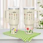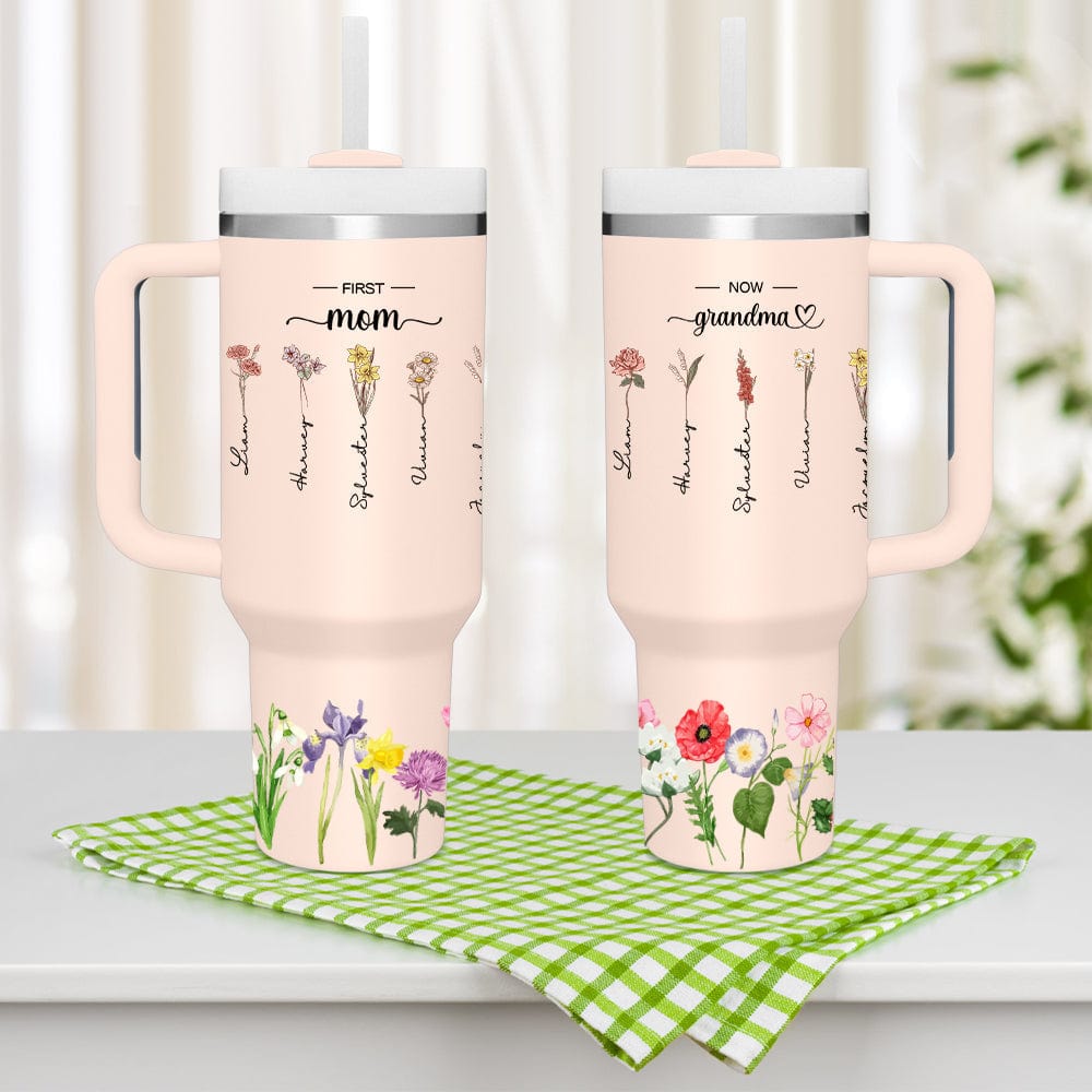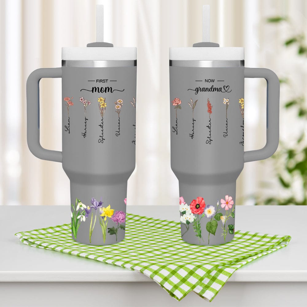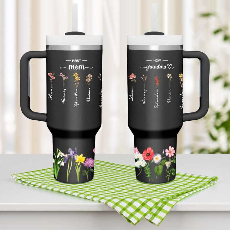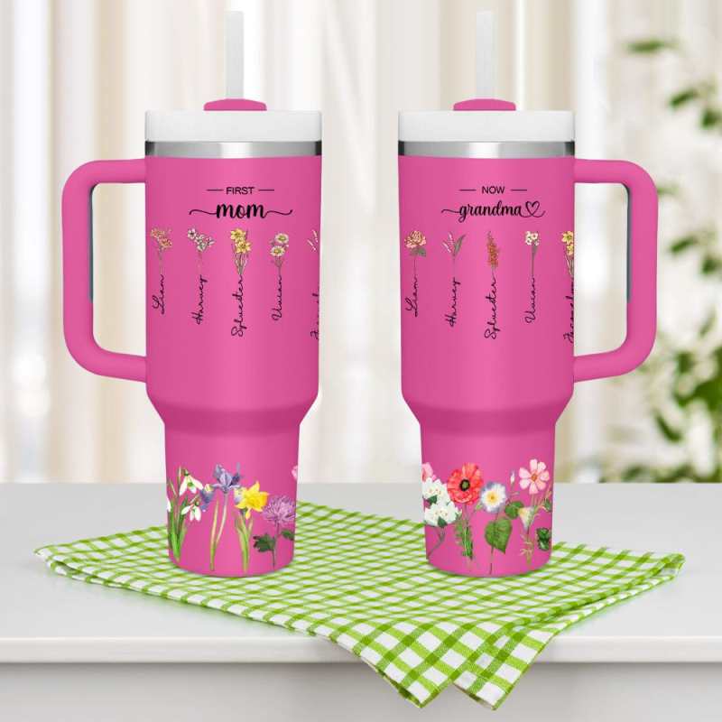 Vi presentiamo il bicchiere termico personalizzato con cannuccia e fiori per mamma e nonna. Un accessorio elegante e significativo per le donne speciali della vostra vita. Questo bicchiere personalizzato vi permette di personalizzarlo con bellissimi fiori e i loro nomi, creando un omaggio bello e pratico per la vostra mamma e nonna.
