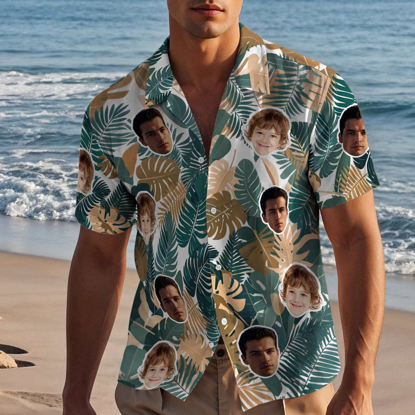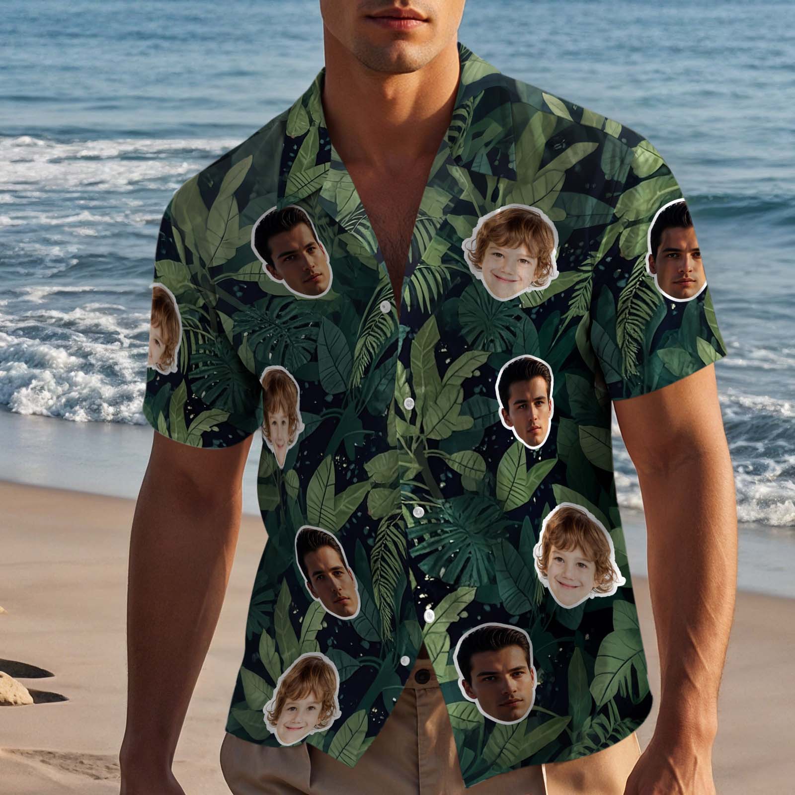 • Camicie hawaiane personalizzate con il volto estampa integralecamicia da spiaggia loha da uomo