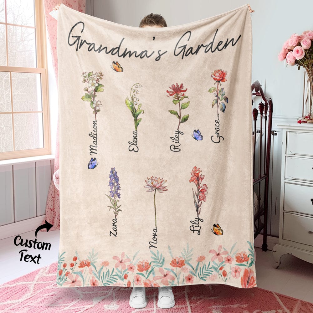Testo semplice personalizzato: puoi aggiungere un testo semplice alla coperta, come 'Il giardino della nonna' o altre frasi calorose, per aumentare la personalizzazione e l'espressione emotiva del regalo.