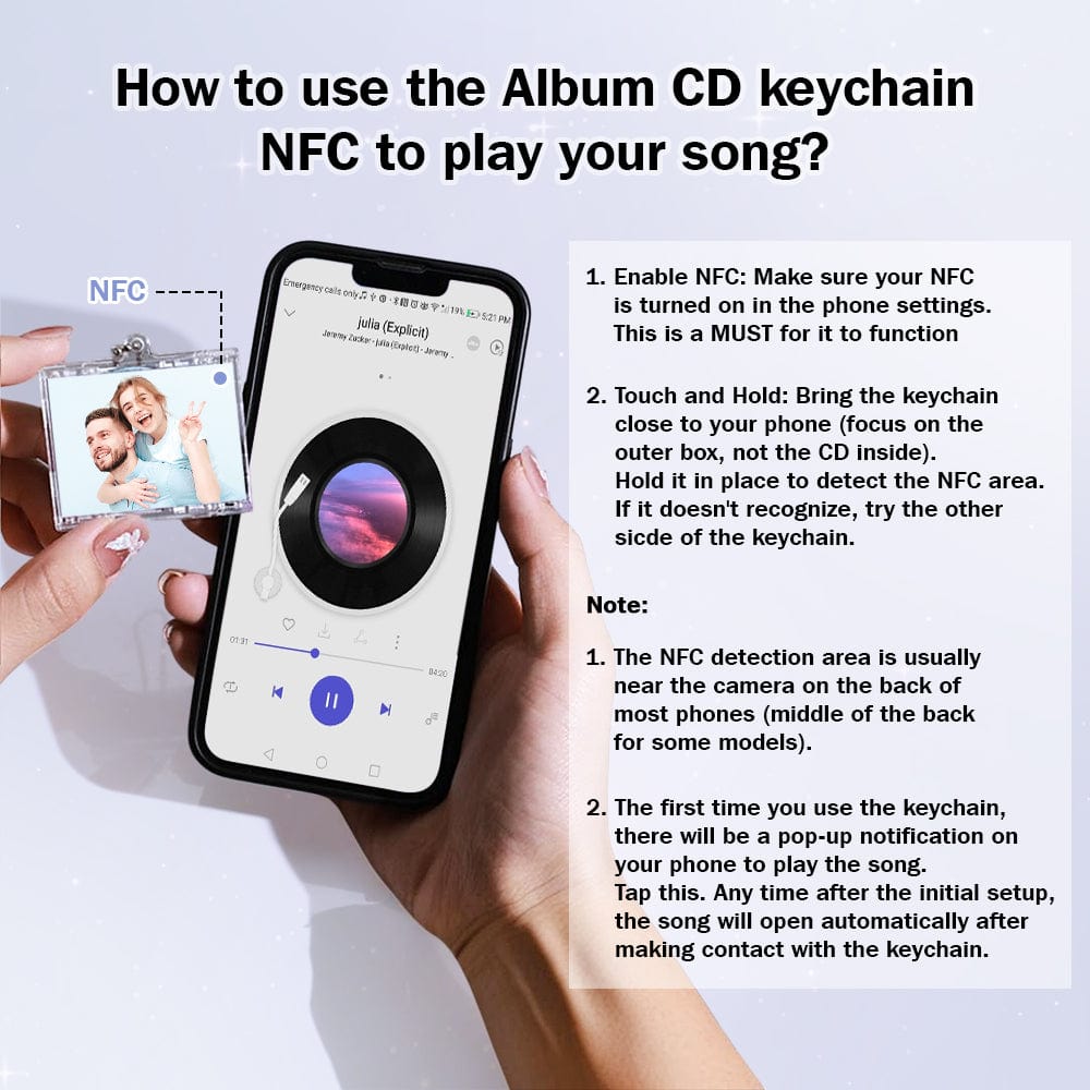 How to use the Album CD keychain NFC to play your song?