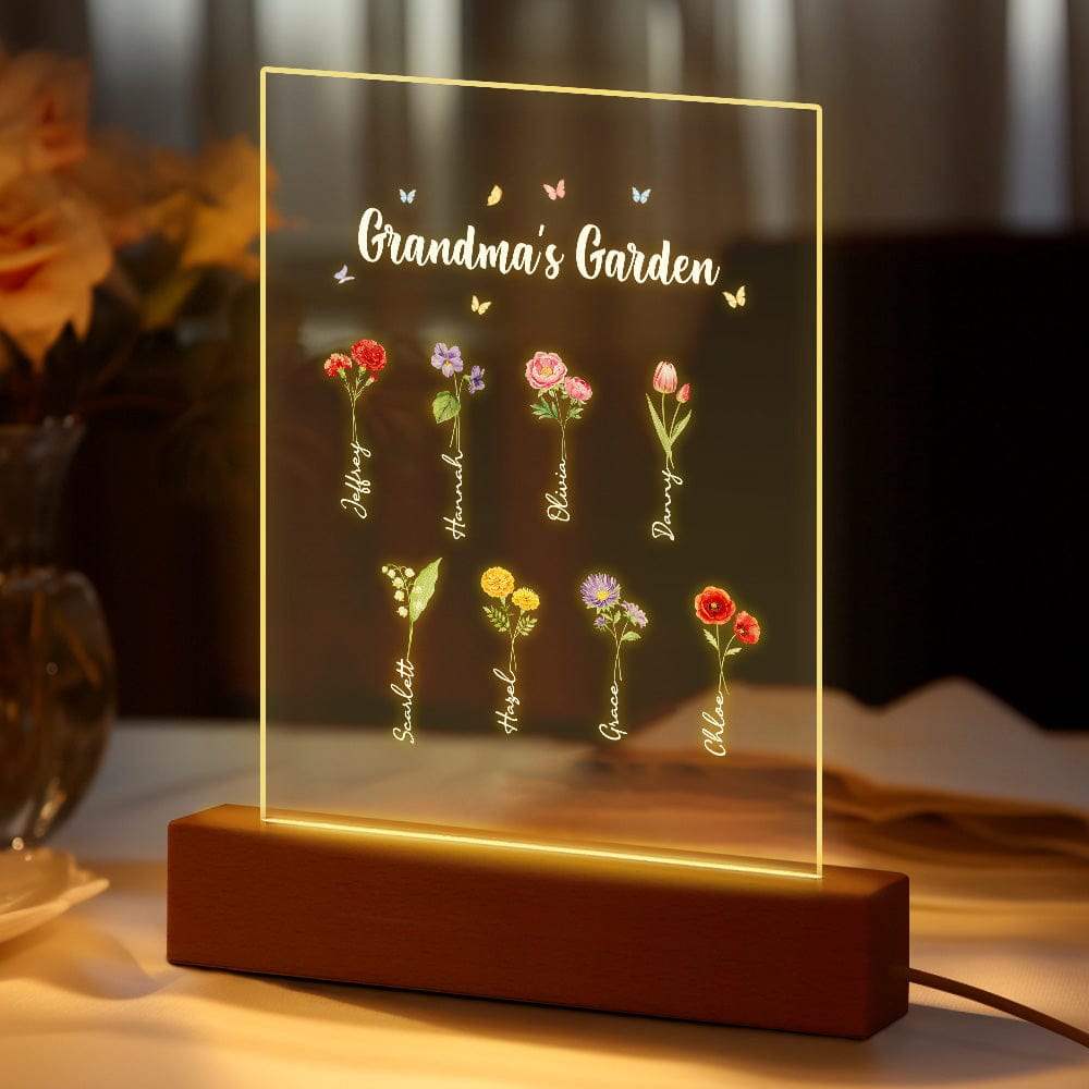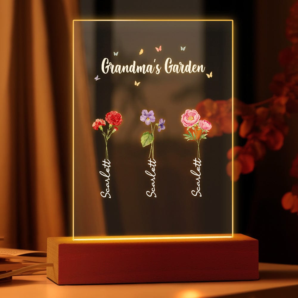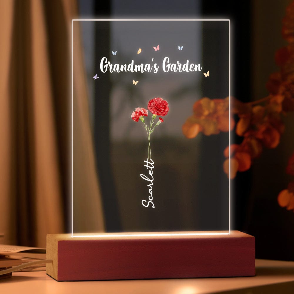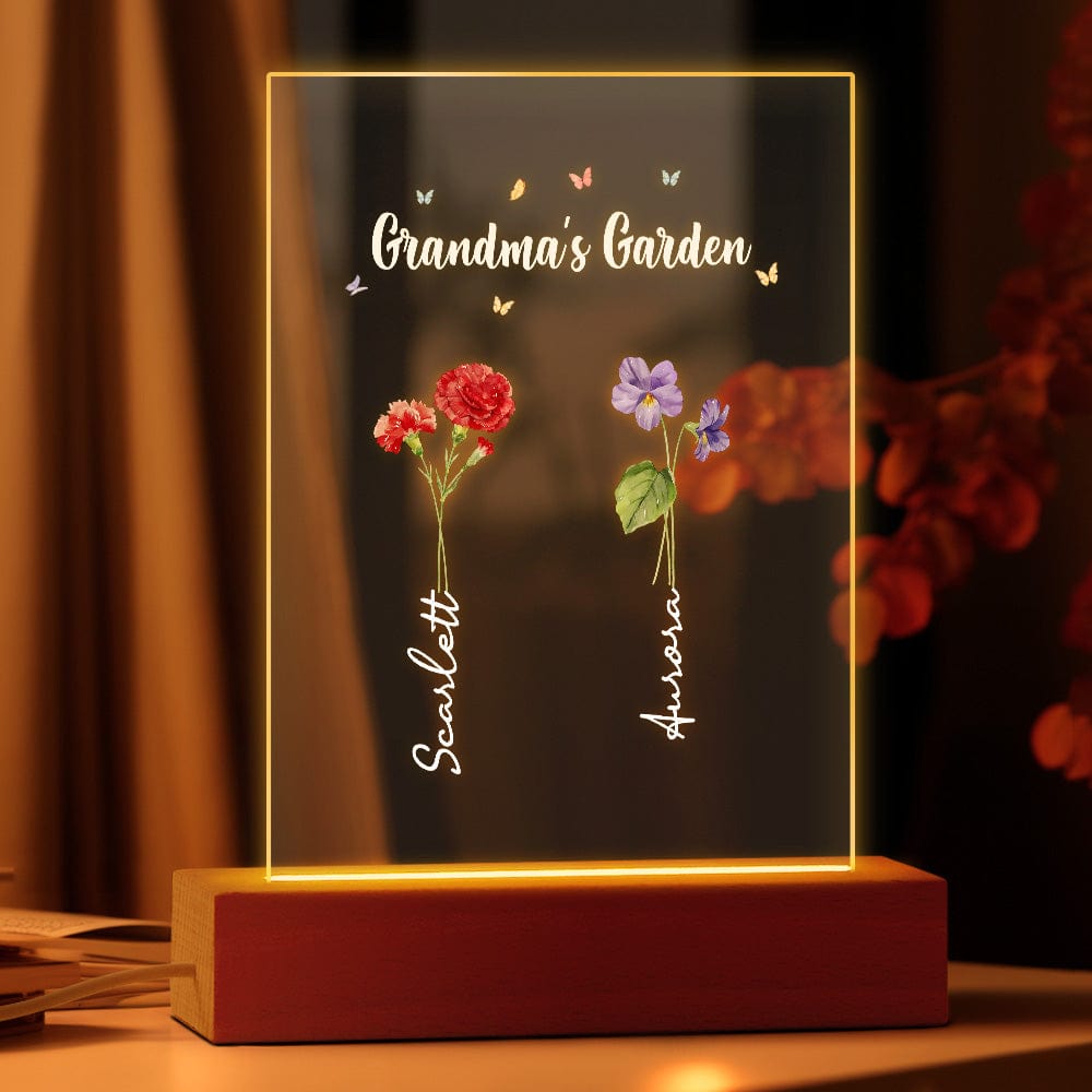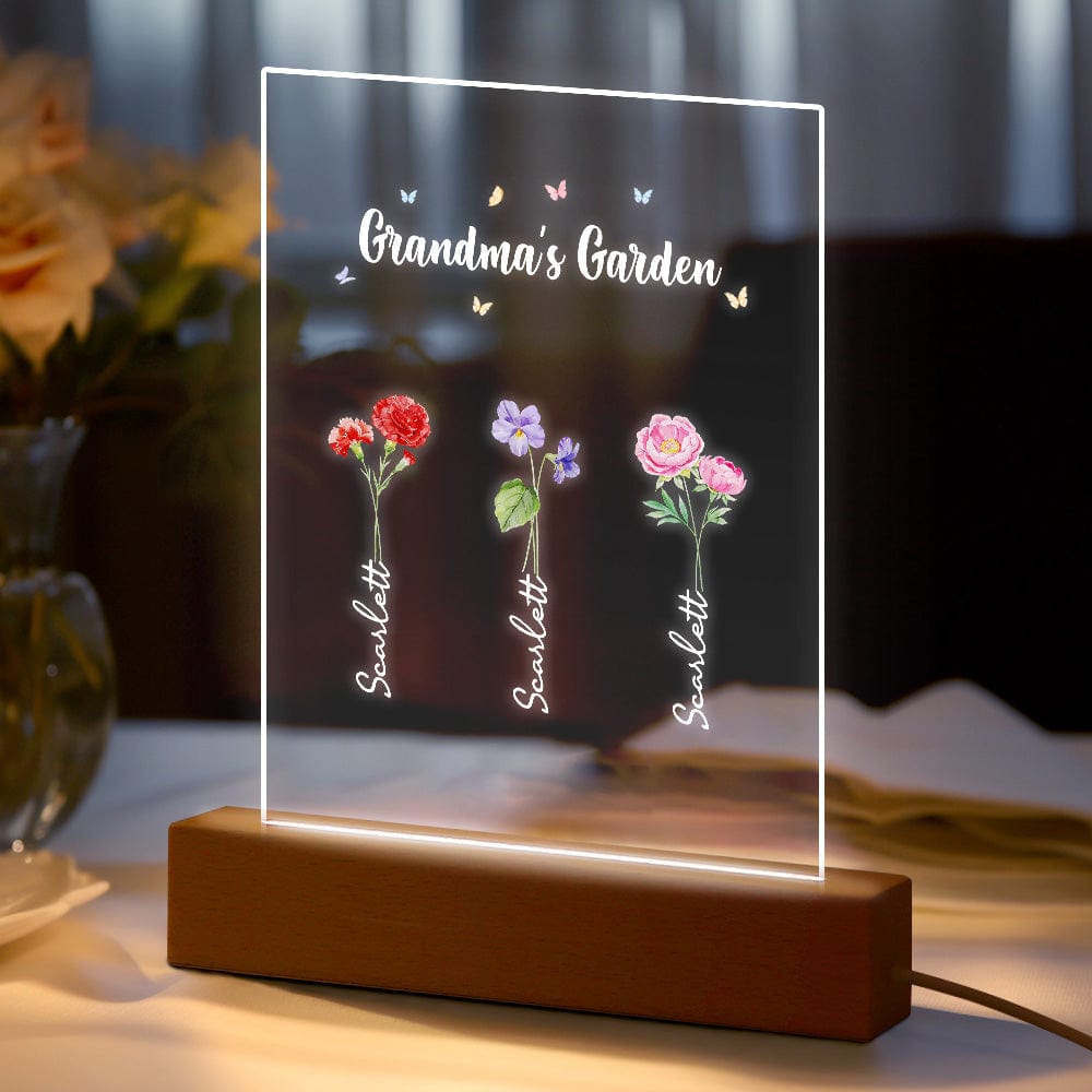 Luce Notturna Personalizzata 'il Giardino Della Nonna' Regalo Floreale Per Il Mese Di Nascita