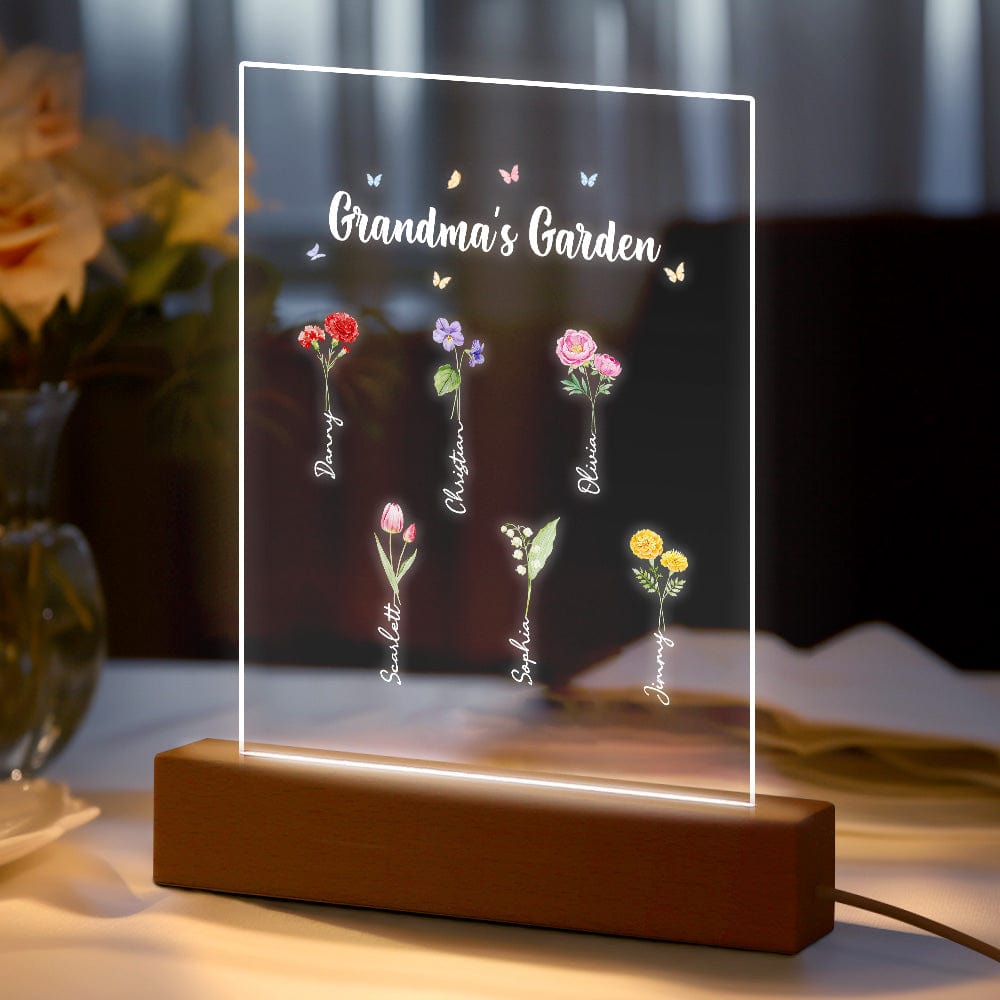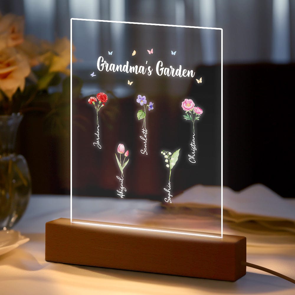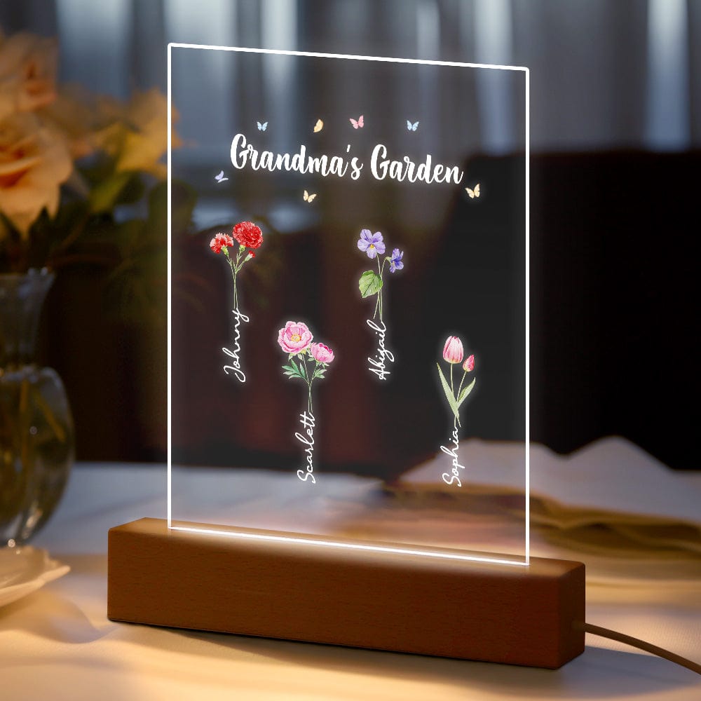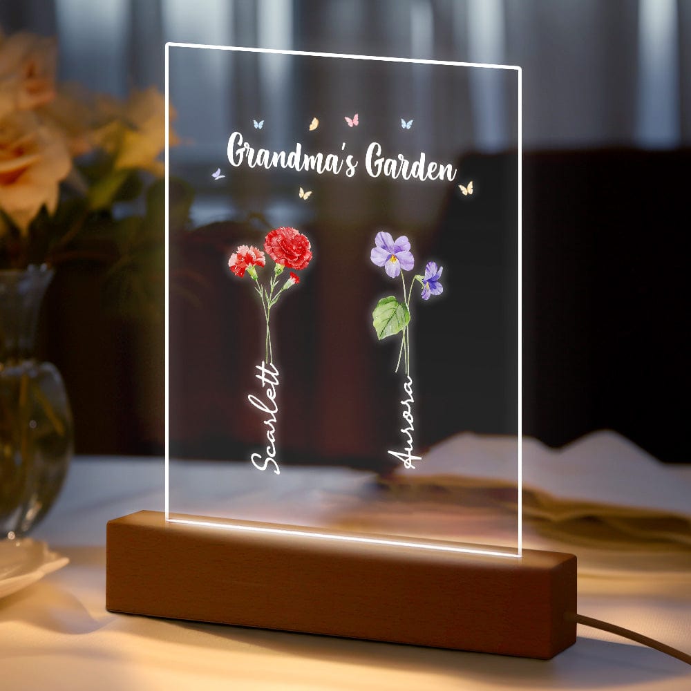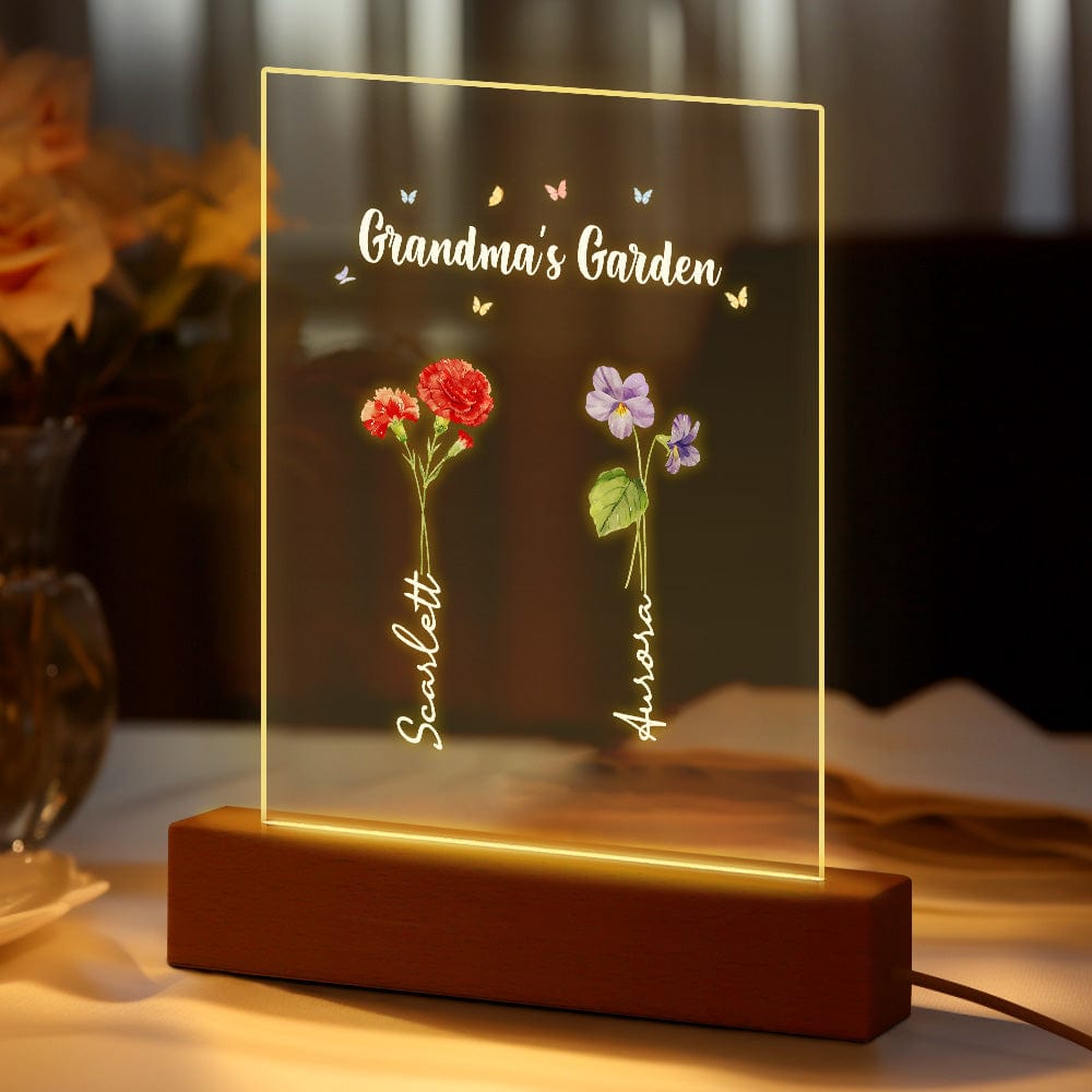 Luce Notturna Personalizzata 'il Giardino Della Nonna' Regalo Floreale Per Il Mese Di Nascita