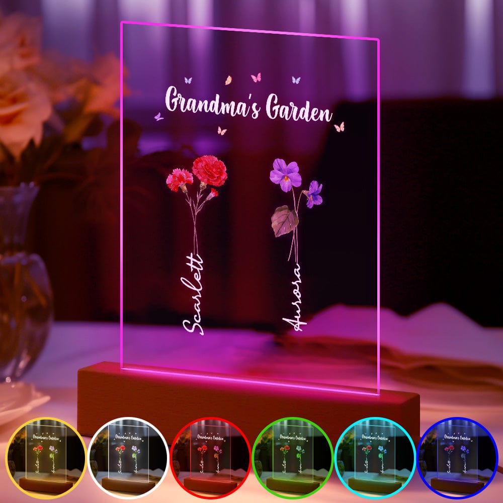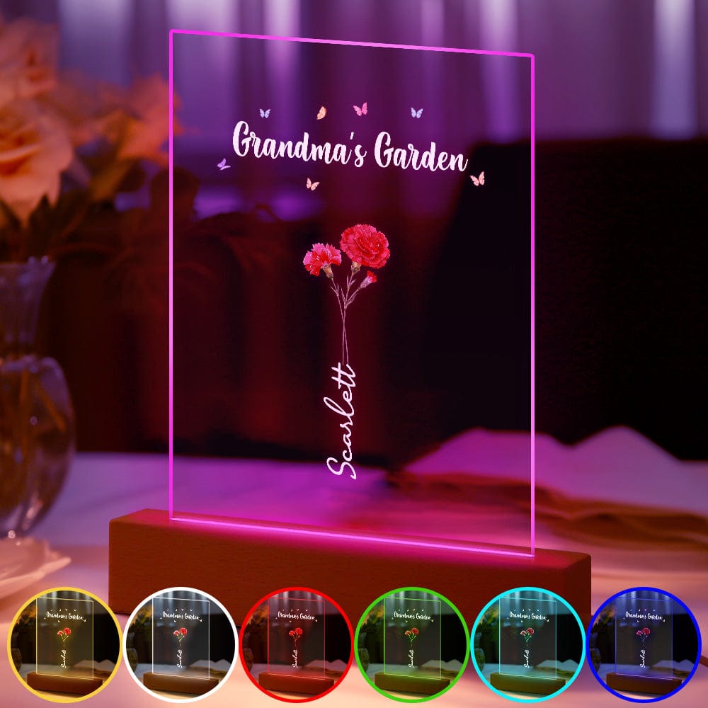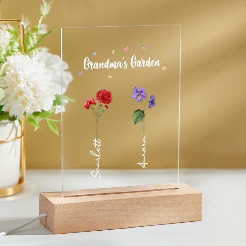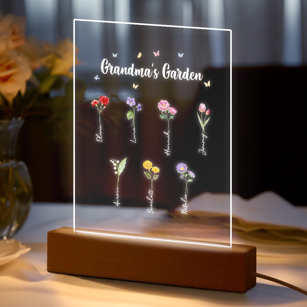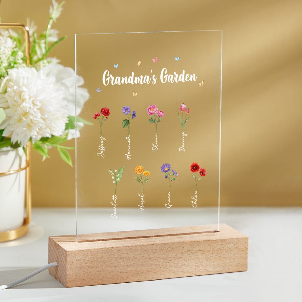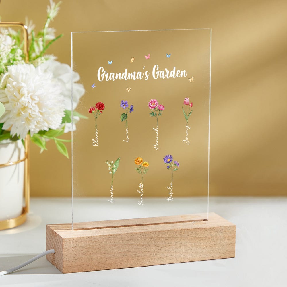 Luce Notturna Personalizzata 'il Giardino Della Nonna' Regalo Floreale Per Il Mese Di Nascita