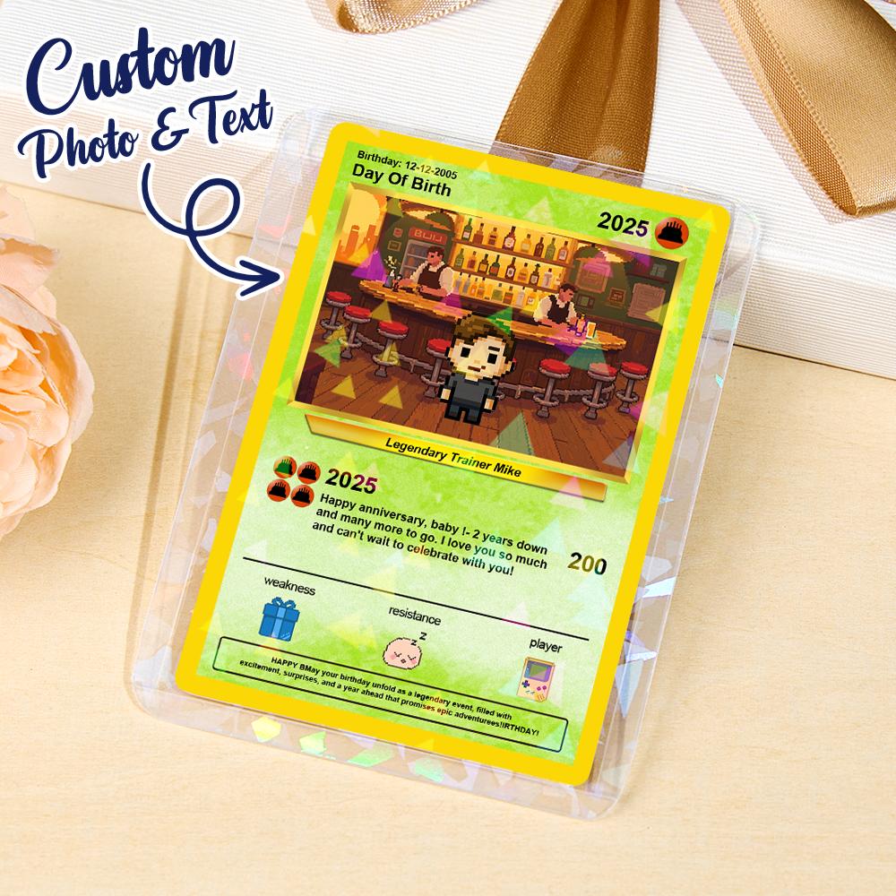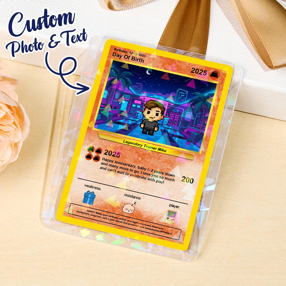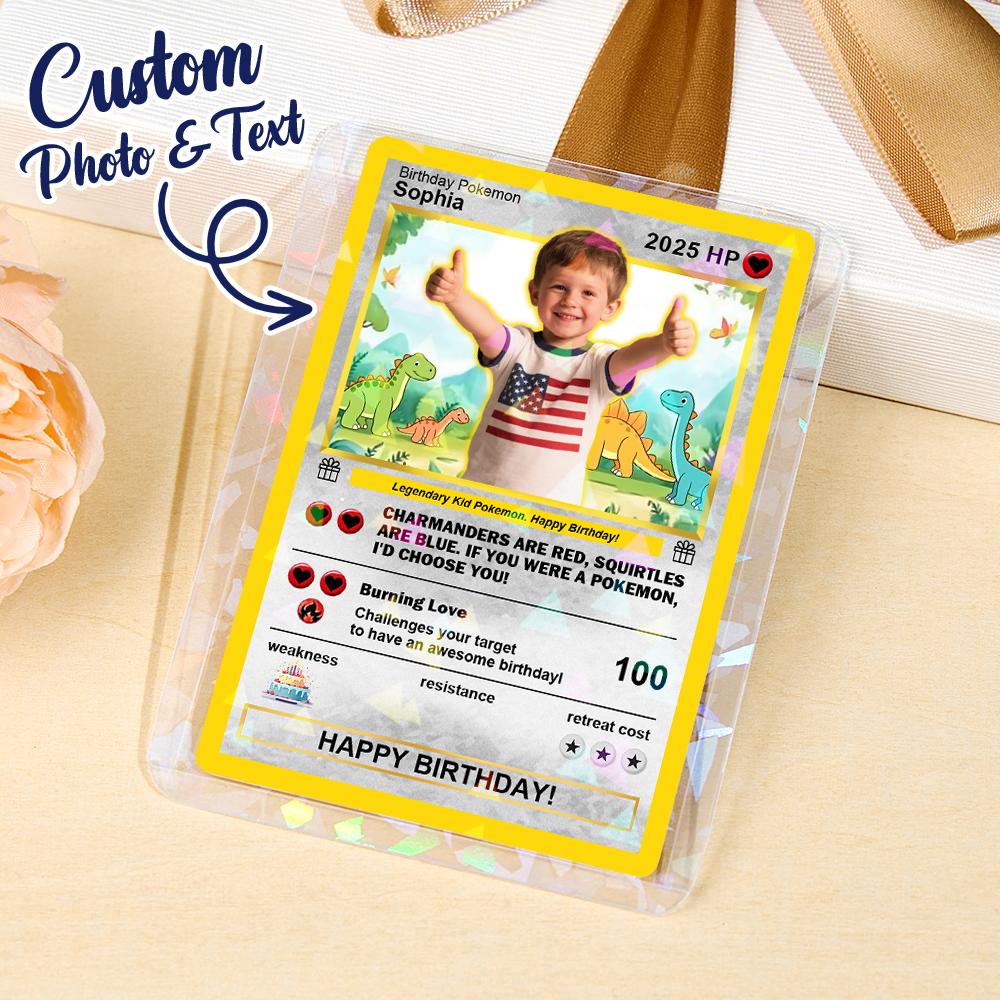 Celebra ogni momento speciale con questa Poke Card personalizzata e unica nel suo genere. Trasformeremo la tua foto in un biglietto d'auguri unico ispirato agli anime, il regalo personalizzato perfetto per i fan di tutte le età.
