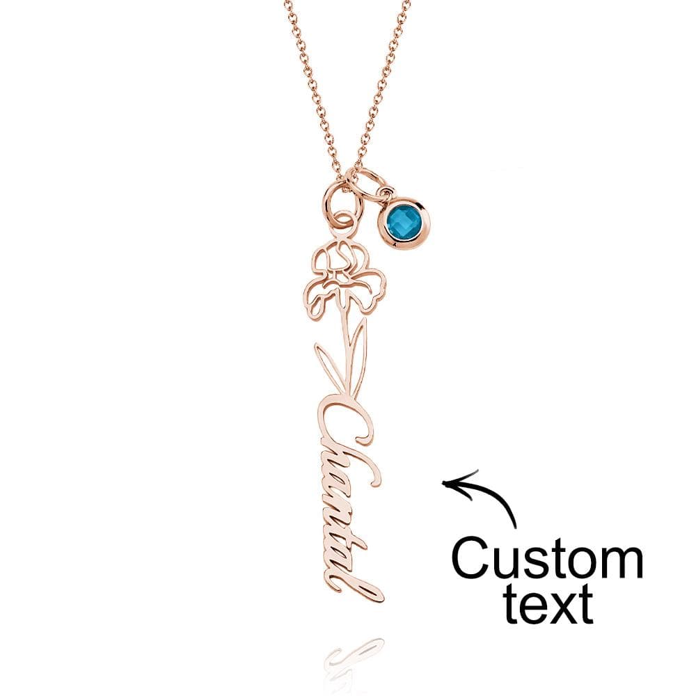 Collana Personalizzata Con Testo, Fiore Di Nascita E Pietra Portafortuna, Regalo Personalizzato Per La Mamma