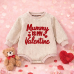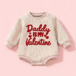 Design: La tutina per neonata presenta scollo rotondo, maniche lunghe, ricamo con lettere, bottone automatico sul cavallo, abbinata a una fascia rossa per creare una dolce atmosfera di San Valentino
