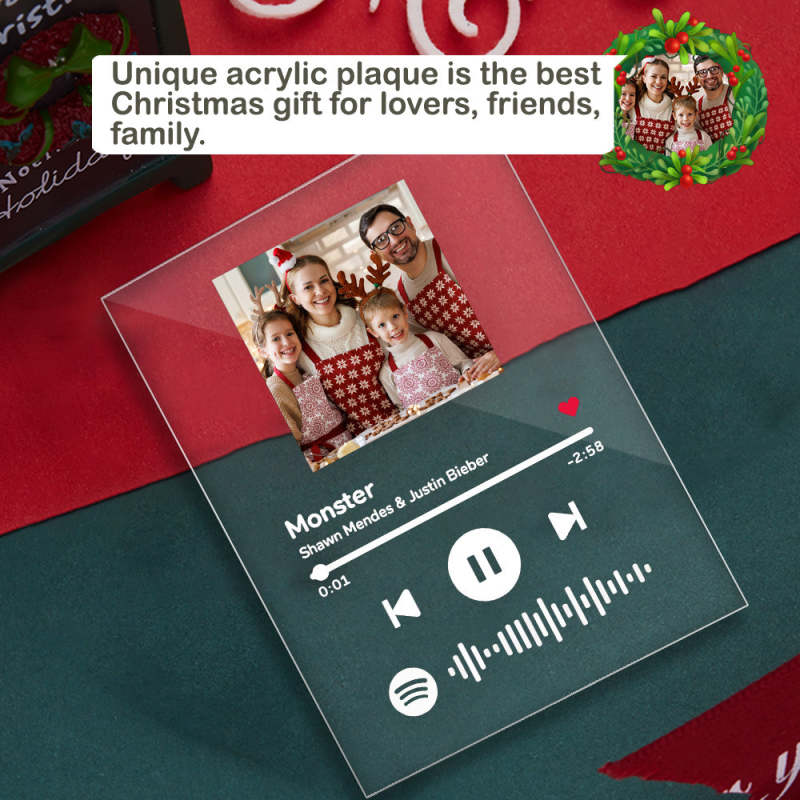 Targa Personalizzata Spotify In Vetro Acrilico, Regalo Di Natale Per La Famiglia
