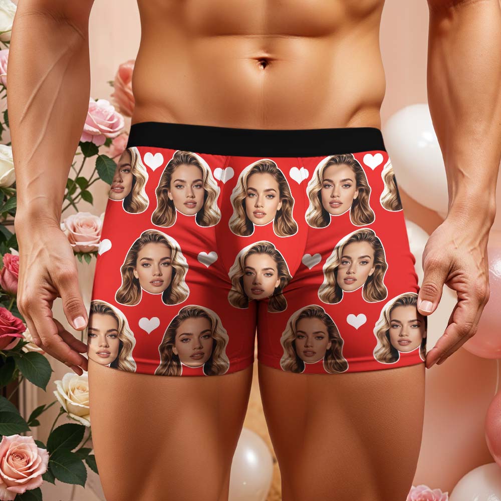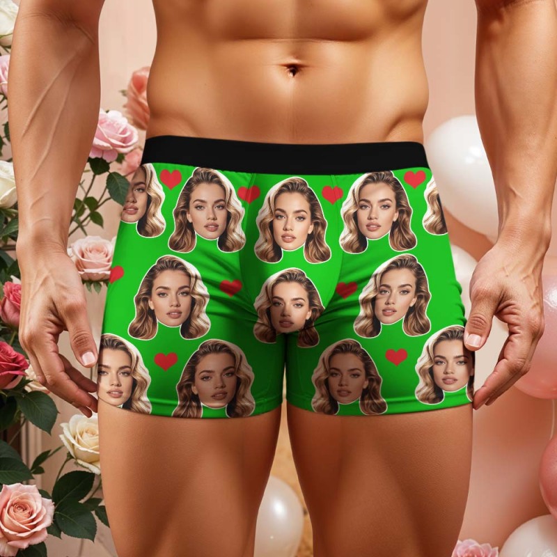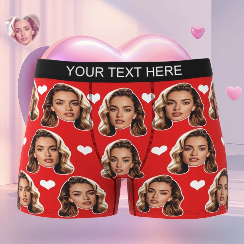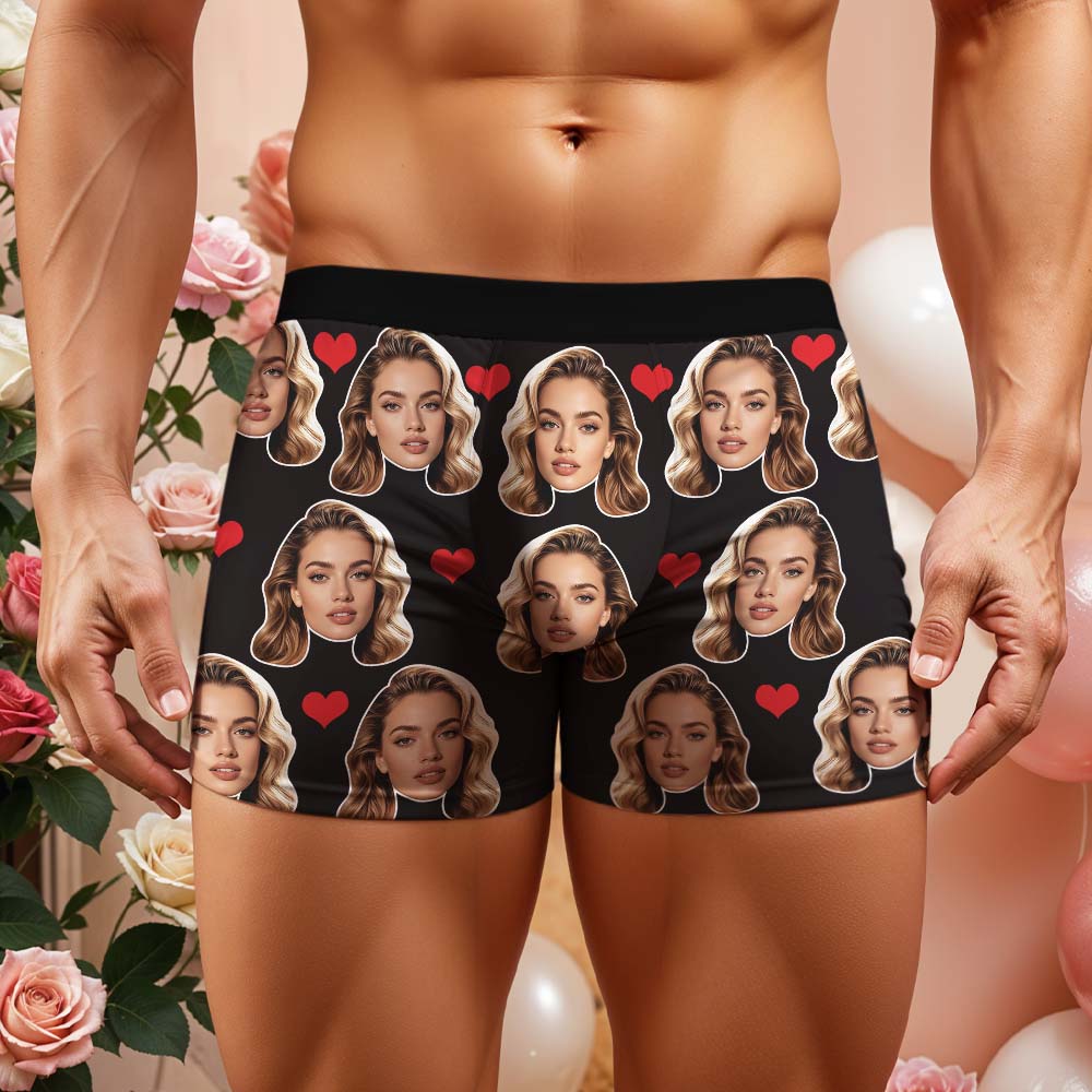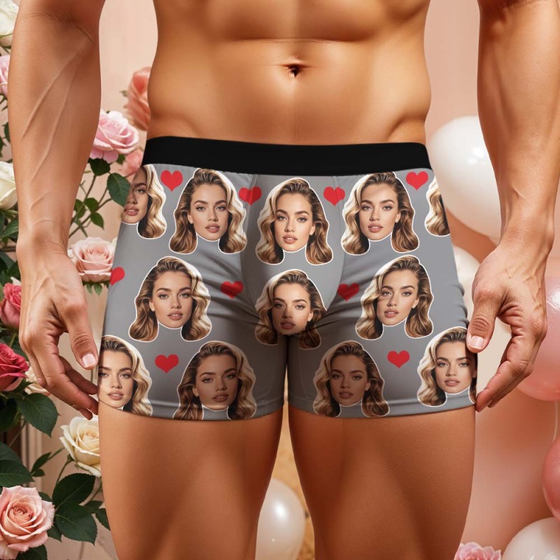 Boxer Da Uomo Personalizzati Con Grande Faccina E Cuore, Regalo Per Uomo.