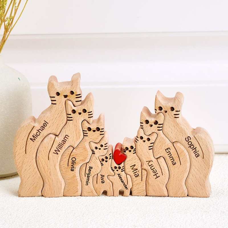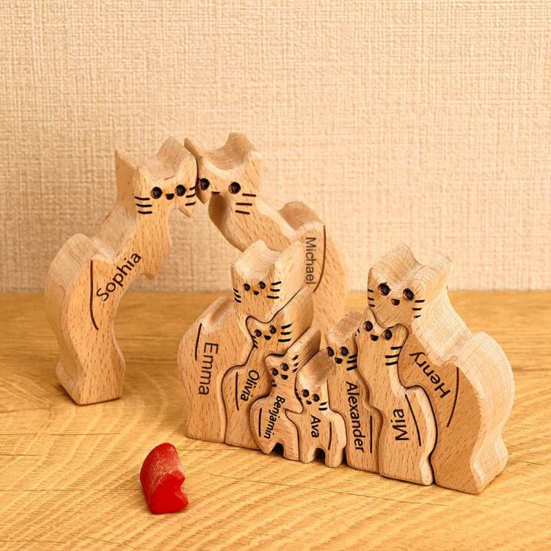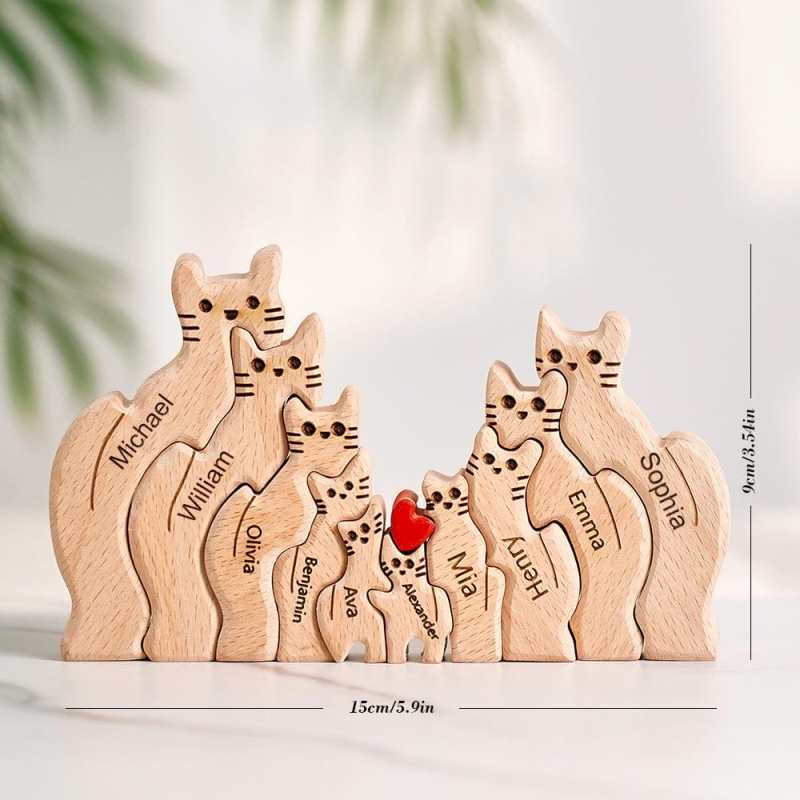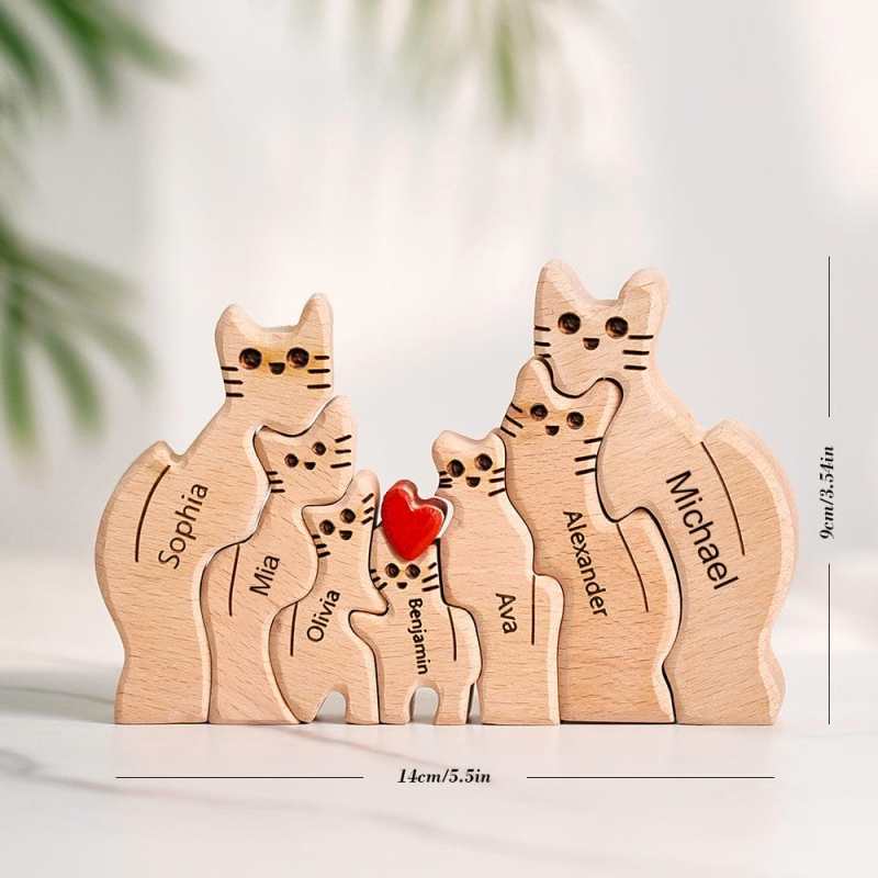 Puzzle Di Legno Con Gatti E Nomi Di Famiglia Personalizzabili, Decorazione Per La Casa, Idea Regalo