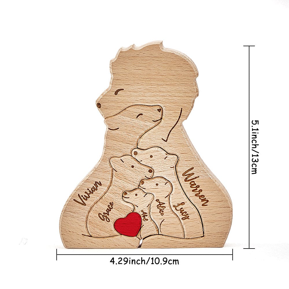 Questo puzzle in legno è molto più di un semplice oggetto decorativo: è un capolavoro personalizzato. Realizzato con amore, presenta i nomi di genitori e figli finemente incisi, trasformandosi in un regalo unico che irradia il calore e l'unione della tua famiglia!